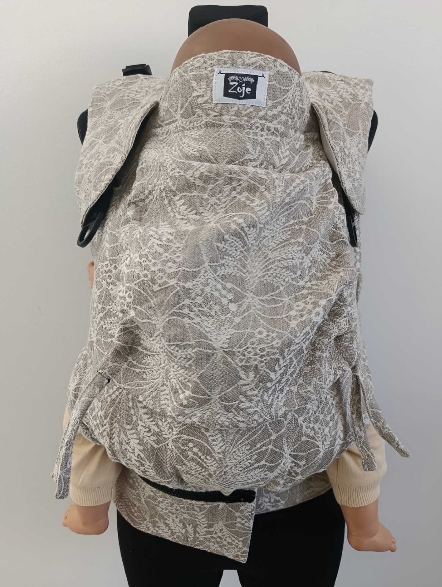Ergonomický detský nosič ZOJE ONE s jemným motívom kláskov. Na výber máte z ergonomických ramenných popruhov alebo krížených ramenných popruhov. Kapucnička je rovná a môžete si pri objednávaní vybrať pevnú alebo odopínateľnú pomocou patentiek. Súčasťou nosiča je odopínateľná dvojvrstvová kapsička na pár drobností ako je mobil, kľúče atď. a chrániče ramenných popruhov, takzvaných slintáčikov. Zapínajú sa pomocou patentiek. Nosič je plne nastaviteľný podľa veľkosti dieťatka. Šírku nosiča nastavíte jednoducho stiahnutím sťahovača (pracka) v dolnej časti nosiča, hneď nad bedrovým pásom. Nastaviteľná je aj výška chrbtovej opierky, ktorú pomocou sťahovačov stiahnete podľa potreby. Takto bude nosič rásť spolu s dieťatkom. V hornej časti chrbtovej opierky sa nachádza šnúrka, pomocou ktorej nastavíte šírku nosiča tak, aby bola fixovaná hlavička dieťatka, ktoré ju ešte samo neudrží. Tento spôsob nastavenia nosiča zaručuje maximálnu bezpečnosť počas nosenia. Bedrový pás je príjemne mäkký, ideálny na popôrodné bruško. Zapína sa pomocou bezpečnostnej spony.